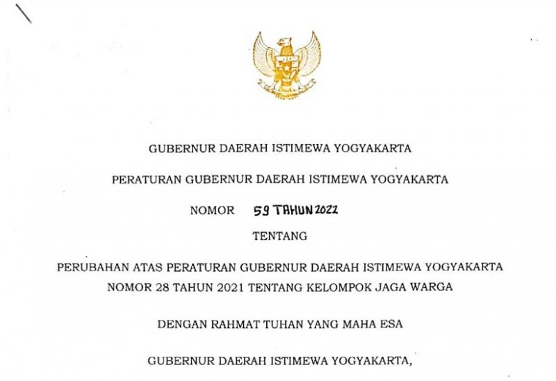 PERATURAN GUBERNUR DIYOGYAKARTA PERUBAHAN PERGUB TENTANG KELOMPOK JAGA WARGA
