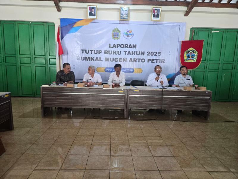 Petir,Sidasamekta//Rabu Kliwon,28 Januari 2026 BUMKAL MUGEN ARTO Kalurahan Petir melaksanakan Musyawarah Kalurahan Penyampaian Laporan Pertanggungjawaban Pengelolaan Bumkal tutup buku untuk Tahun anggaran 2025. Kegiatan dilaksanakan di pendopo Balai Kalurahan Petir dengan menghadirkan Panewu Rongkop, Direktur beserta jajaran Pengurus Bumkal, jajaran Pengawas Bumkal, Lurah beserta Pamong Kalurahan, Ketua beserta Anggota Bamuskal, serta perwakilan dari tokoh masyarakat atau pengurus harian Lembaga kemasyarakatan Kalurahan Petir.