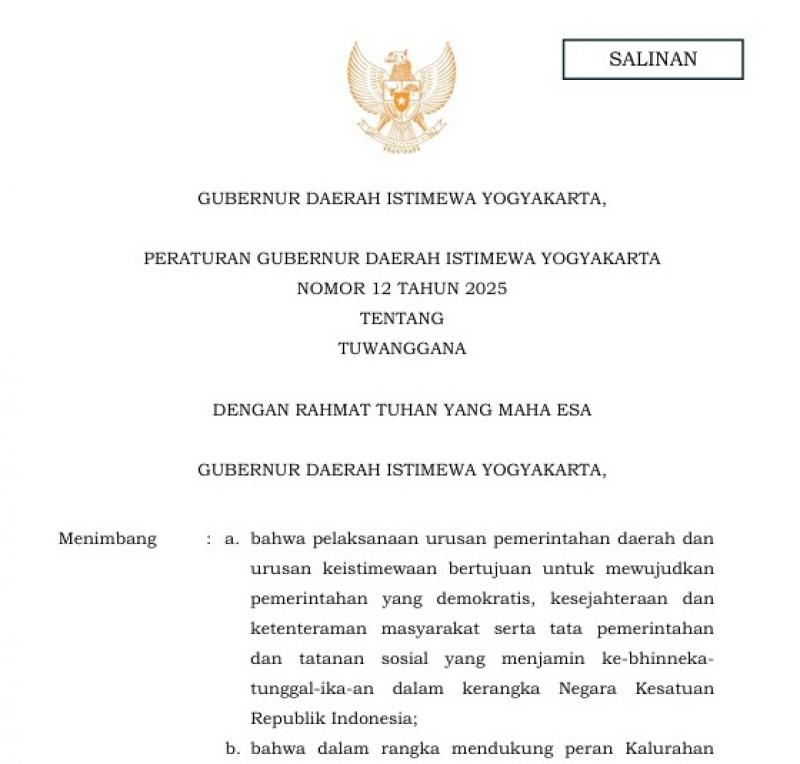 - PERATURAN GUBERNUR DIY TENTANG TUWANGGANA