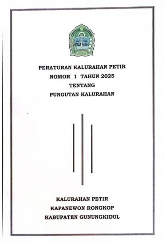 Peraturan Kalurahan yang ditetapkan pada tanggal 7 Januari 2025 ini dituangkan dalam Lembaran Kalurahan Petir Tahun 2025 Nomor 1.